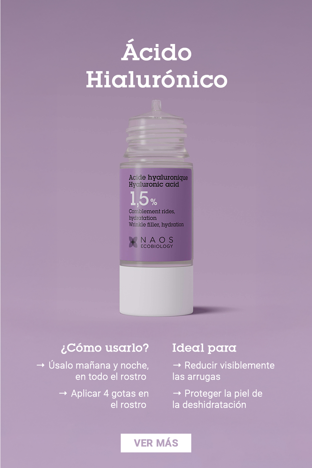 El ácido hialurónico es un ingrediente que se encuentra en nuestro cuerpo (el 50% dentro de nuestra piel) que participa de manera natural para mantener la piel hidratada. En cuanto al ingrediente sintético, actúa en diferentes niveles de la epidermis: suavizar la superficie y rellenar las arrugas faciales, que pueden ser como las patas de gallo o las arrugas de la frente.
