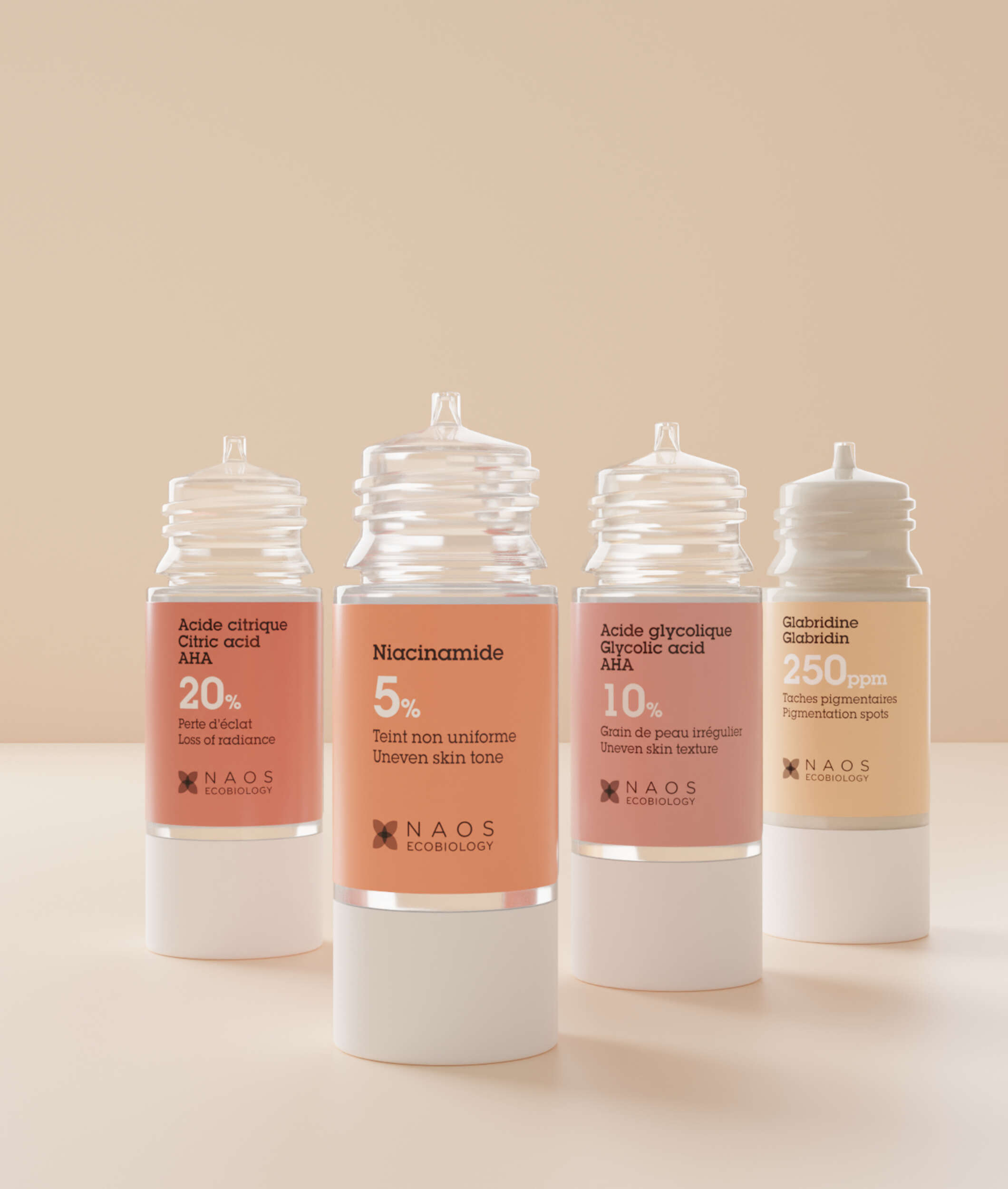 Puedes escoger dentro de nuestra gama completa de activos puros, los que mejor se adecuen a tu tipo de piel. Los más destacados son los siguientes: